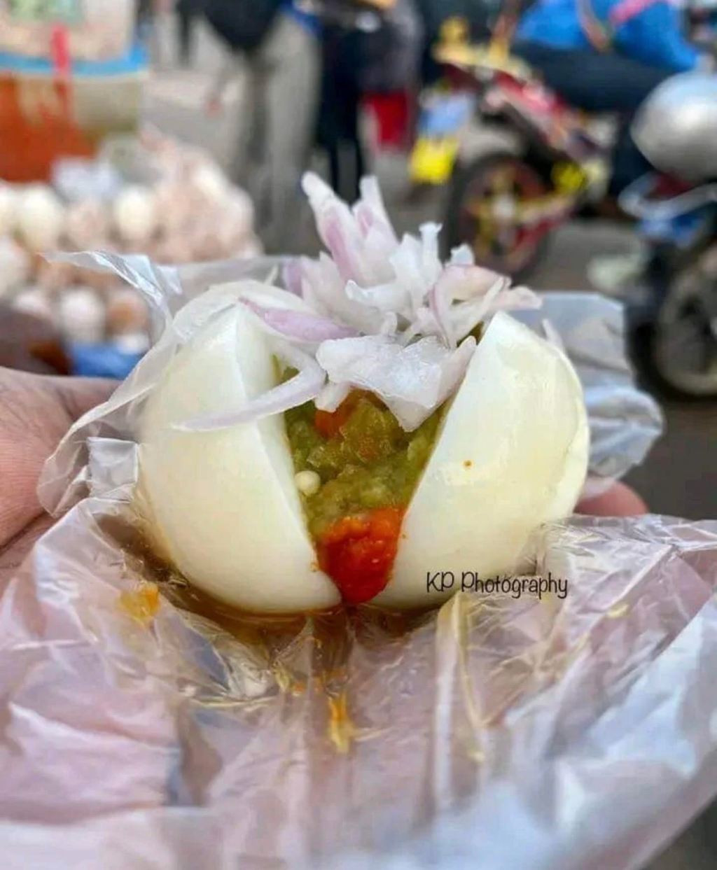 Another popular local snack is Kosua ne Meko.Translating to English,it is simply understood as Egg and Pepper.Pepper specifically Ghanaian red pepper is inserted into a boiled egg which results in the unique taste identified as Kosua ne Meko.It is usually sold on street markets in Ghana.
